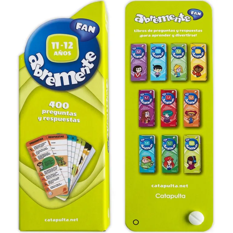 La clásica colección Abremente de preguntas y respuestas llega renovada, con nuevo nombre, divertidos personajes y contenido actualizado para aprender jugando allá donde estés. Su formato en abanico es ideal para que lo lleves allá donde vayas, ¡juega en solitario o desafía a quien tengas al lado!