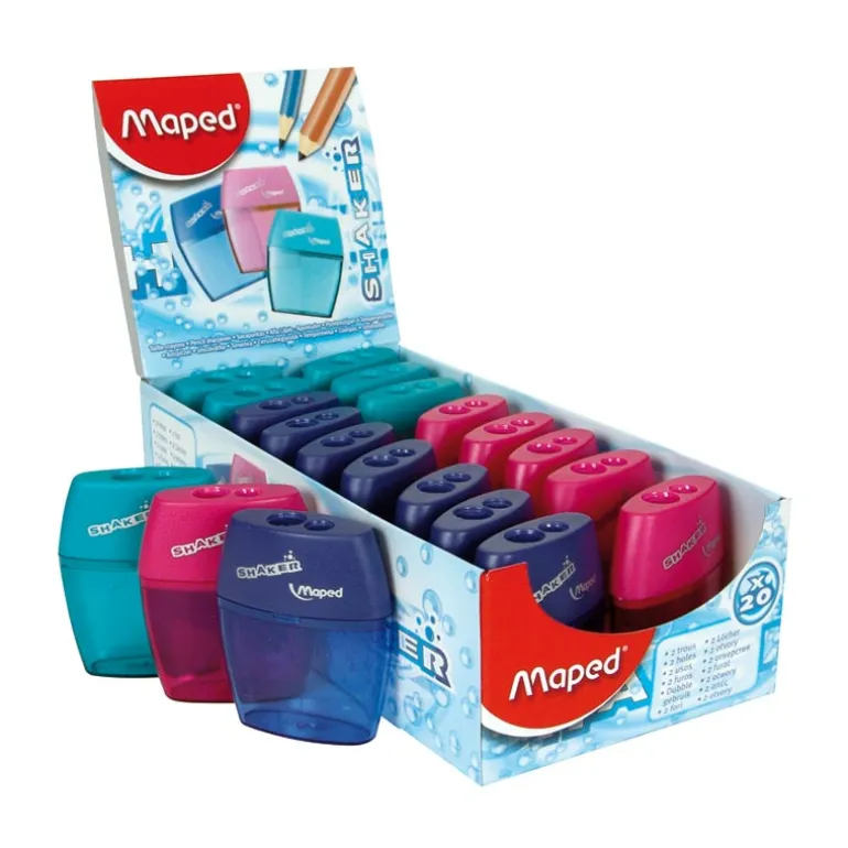 Afilalápiz realizado en plástico con hoja de metal de calidad, lo que le aporta gran durabilidad. Indicado para lápices, ceras o pinturas de madera de diversos grosores, ya que dispone de dos orificios de afilado. Su depósito es muy amplio, de forma que la superficie de trabajo se mantiene limpia en todo momento. Presentado en caja de 20 unidades en colores surtidos.