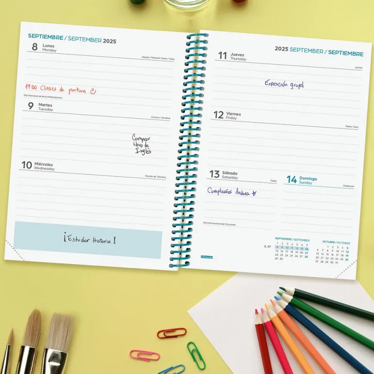 ¡Comienza el curso de la forma más divertida e inspiradora! Sorprende a todos con esta fantástica agenda tamaño cuarto, en formato semana vista y con un colorido diseño de rayas de colores. ¡Organízate como nunca!