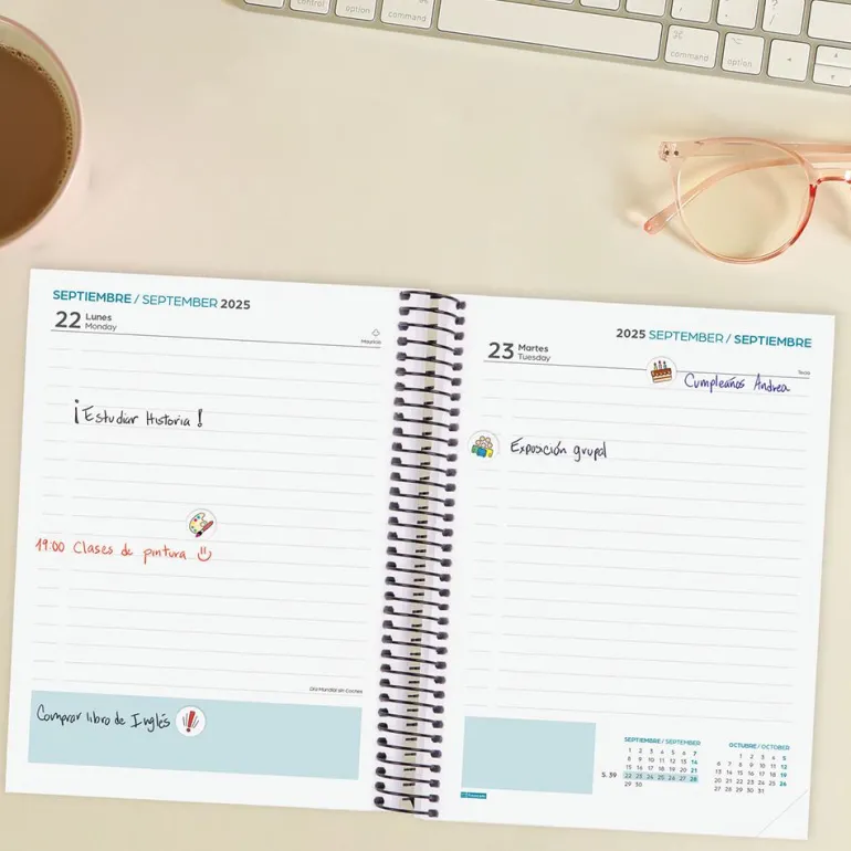 ¡Comienza el curso de la forma más divertida e inspiradora! Sorprende a todos con esta fantástica agenda tamaño cuarto, en formato día por página y con diseño en negro, ¡podrás tener bien organizadas todas tus tareas pendientes!