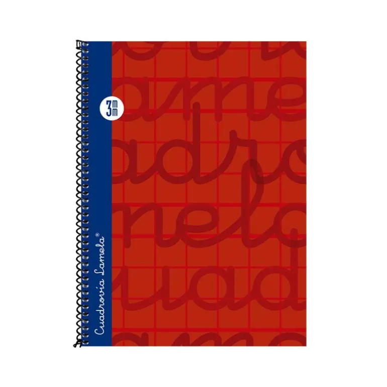Cuaderno tamaño cuarto con diseño de cuadrovía de 3mm. Encuadernado en espiral, con tapa extra dura, impresa en color rojo y plastificada. Contiene 80 hojas de papel Offset blanco extra de 70 g/m con margen.