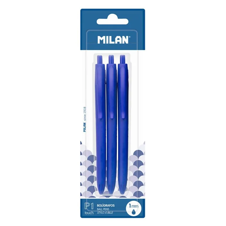 Blíster con 3 bolígrafos P1 touch azules Milan.