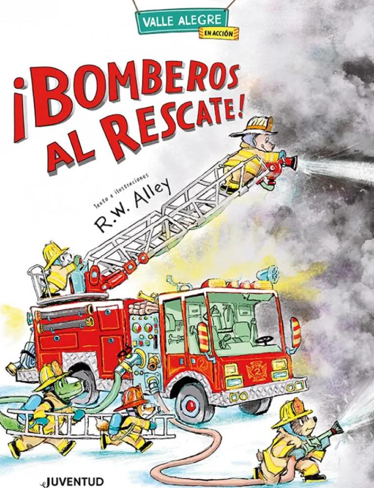 ¡Nii-noo, nii-noo! ¡Bomberos al rescate! Los bomberos de Valle Alegre responden a las llamadas para proteger su querida ciudad. Escaleras, hachas y mangueras son las protagonistas mientras los bomberos apagan fuegos, salvan vidas… ¡y la heladería de la ciudad! Acompáñalos en su ruta por toda la ciudad con todo tipo de vehículos. Un divertido e informativo álbum lleno de detalles en el que, a través de una historia, se muestra en profundidad el equipamiento, los camiones y el parque de bomberos por dentro. Cuenta con páginas interactivas al final del libro que animan a los lectores a conocer todavía más el mundo de los bomberos.