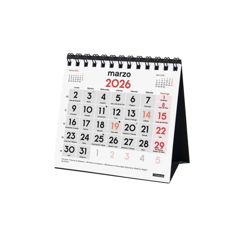 Calendario anual de sobremesa con espacio diario para anotaciones, encuadernado con doble espiral. Perfecto para planificar.