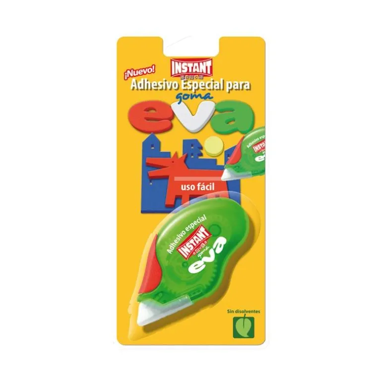 Cinta adhesiva ideal para pegar Goma Eva y otros materiales como: papel, cartón y fotos. Fácil aplicación gracias a su mango antideslizante. Pegado instantáneo y sin disolventes. Blíster 1 unidad.