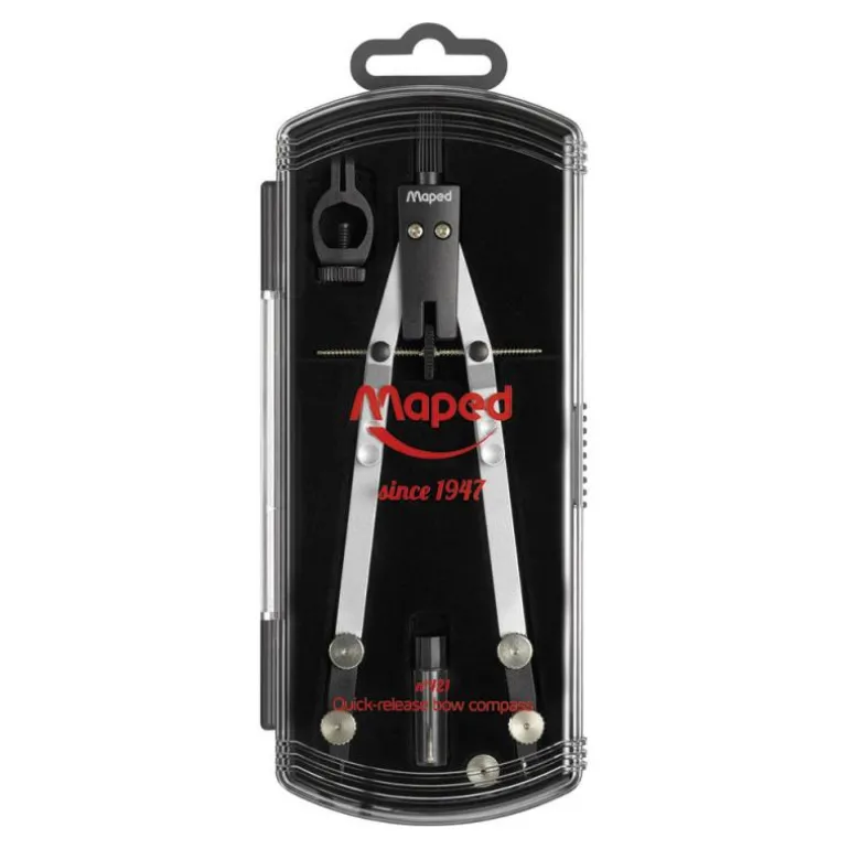 Este genial compás se convertirá en tu mejor aliado en dibujo, ya que incluye rueda central con ajuste rápido, adaptador universal y patas articuladas.