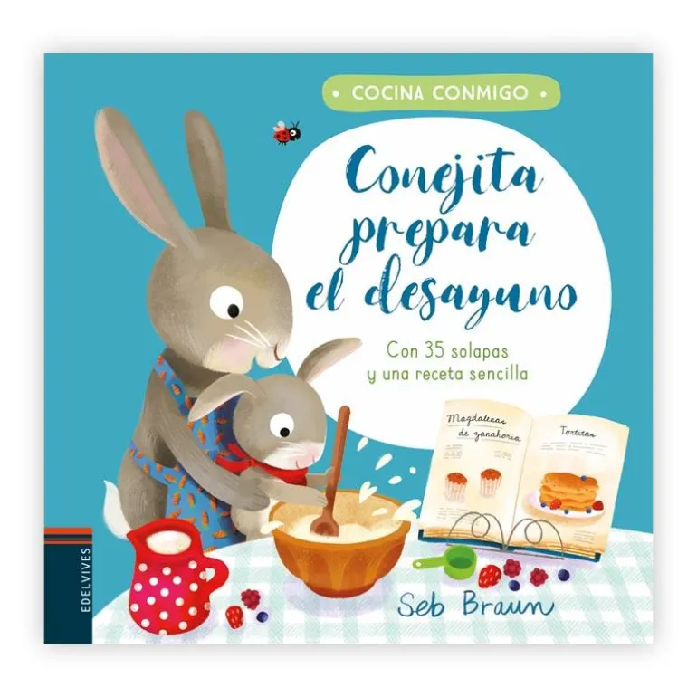 Busca en las alacenas, entre los arbustos y dentro del gallinero. Ayuda a Conejita a reunir todos los ingredientes para preparar con su padre un riquísimo desayuno sorpresa. Al final del libro, encontrarás la receta.