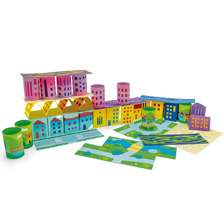 Este fantástico set rebosa creatividad: las piezas de papel son muy resistentes, y vienen preparadas para que puedas ensamblarlas, creando así todos los bloques que luego agruparás para dar forma a tu ciudad.