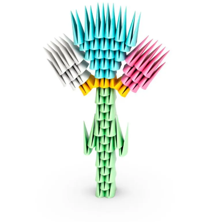 Las piezas son de colores vivos, suaves y flexibles. Su forma inspirada en el origami despertará la imaginación de mayores y pequeños, pues invita a explorar las posibilidades de construcción y experimentar con el equilibrio, la simetría y la verticalidad. Favorecen el desarrollo de habilidades motoras finas, la creatividad y la coordinación ojo-mano de una forma muy divertida.