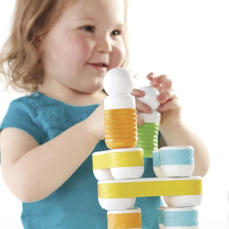 Crea construcciones magnéticas sorprendentes por su sencillez, y estimulantes para sus sentidos con su agradable recubrimiento de goma mate con texturas y suaves colores, y pasa de construcciones simples a construcciones más complejas, a través de sus piezas móviles y giratorias.