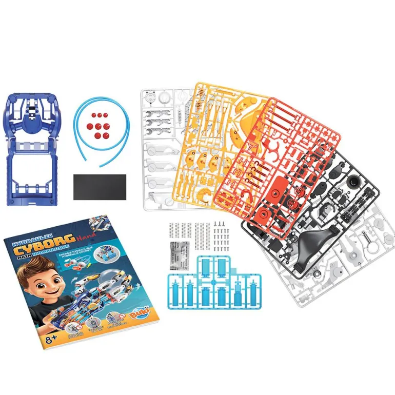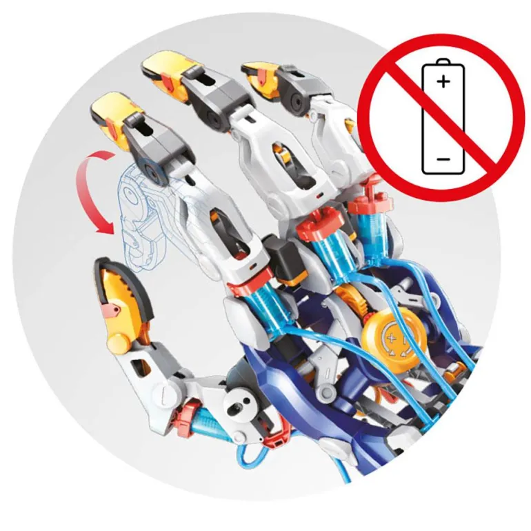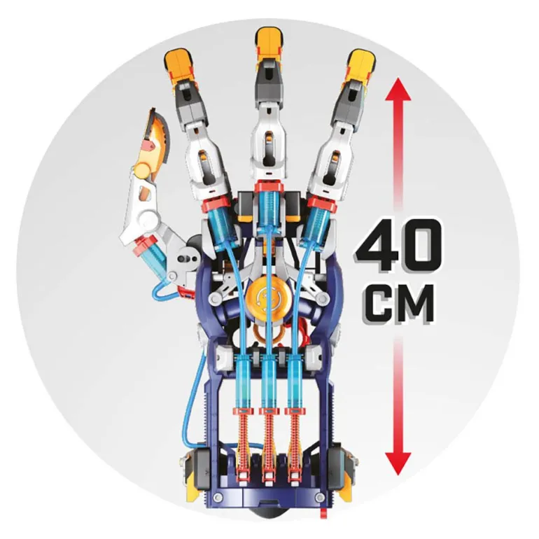 Déjate sorprender por un juego de lo más original y desafiante: te ha tocado construir con tus propias manos una mano cibernética articulada que, una vez montada, podrás poner en marcha por medio de la energía hidroneumática. Es apto para su uso por diestros y zurdos, y te permitirá agarrar objetos, como botellas o pelotas. ¡Increíble!