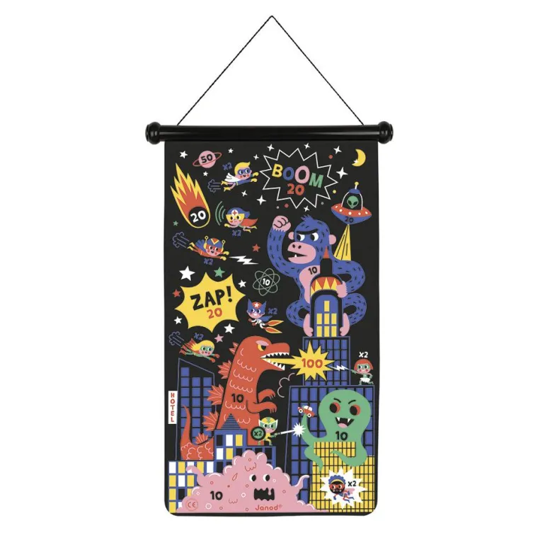 ¡Afina tu puntería con esta divertida y segura diana magnética con diseño de superhéroes! Desafía a tus amigos y familia y disfrutaréis poniendo a prueba vuestra habilidad.
