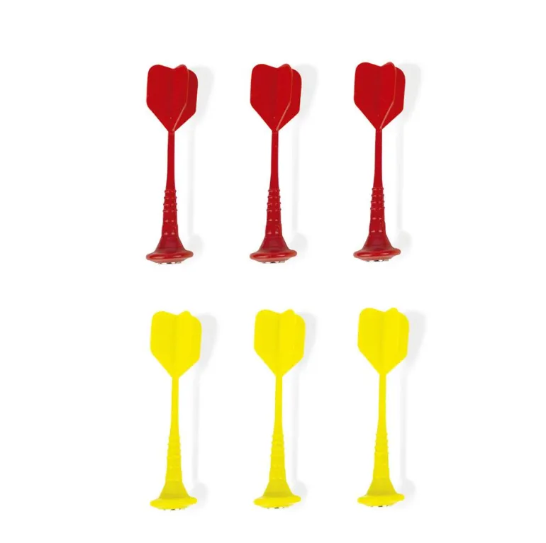 Los dardos están hechos de plástico con una punta de metal de acabado plano, por lo que el juego es completamente seguro para niños y niñas. Es muy sencilla de usar, pues los dardos quedarán adheridos en cualquier parte de la superficie de la diana, aunque sea fuera del área de puntuación; esto ayuda a motivar a los participantes, ya que mientras se divierten desarrollando su coordinación, también potenciarán su habilidad y concentración.