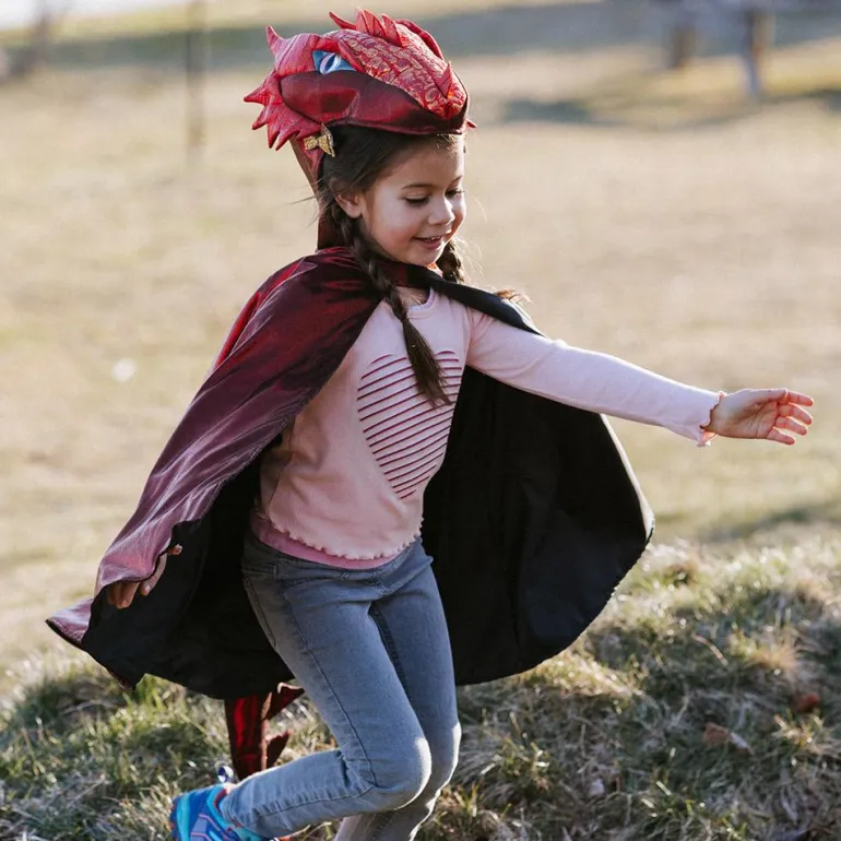 ¡Deja volar tu imaginación y conviértete en un legendario dragón rojo que surca los cielos! Con esta fantástica capa en color rojo metalizado, sorprenderás a todos y podrás inventar mil y una aventuras.