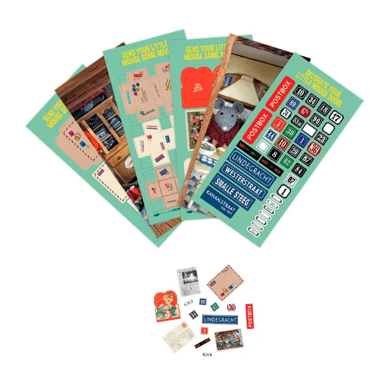 Niños y niñas podrán imaginar un sinfín de aventuras que pueden ocurrir detrás de la pared, justo al cruzar esta mágica puertecita por la que se cuelan los sueños cada noche, ¡su imaginación y su creatividad brotarán a raudales! Contenido: Puerta de madera con marco y bisagras, escalera de madera, buzón de madera, hojas con correo para recortar, periódicos y cartas con adhesivos para los números de la vivienda, rótulo con nombres y escenas de La Casa de los Ratones.