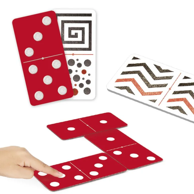 Incorpora esta versión de uno de los juegos más populares, nos permitirá jugar al dominó clásico o al dominó táctil. Dominó de gran tamaño con textura rugosa e ilustraciones de mucho contraste