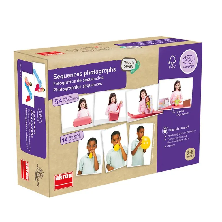 Las secuencias nos permiten desarrollar el pensamiento lógico y la expresión verbal. Con las secuencias podemos abordar la comprensión del orden de las situaciones y las consecuencias, desarrollar la atención, percepción visual y trabajar con los más peques las nociones temporales como empezar, terminar, primero, último, antes, después…..