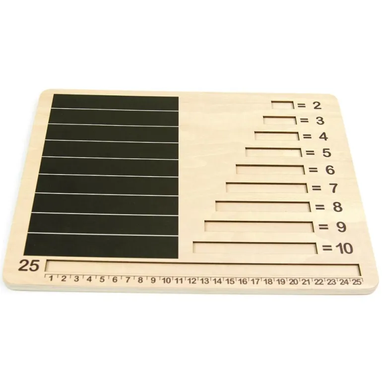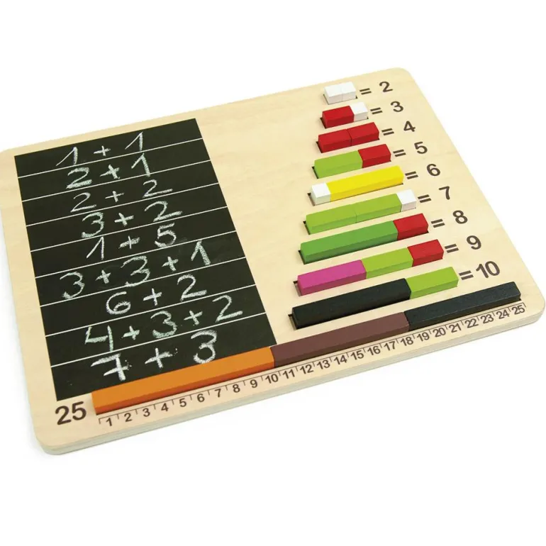 Dos tableros de madera con grabados, para colocar y sujetar las regletas durante el juego y así practicar conceptos básicos de matemáticas y múltiples ejercicios.
