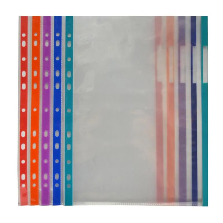 Estas fundas están fabricadas en plástico resistente con acabado ultra cristal y lomo de color con ancho extra. Disponen de miltitaladro para que puedas adaptarlas a cualquier archivador de anillas.