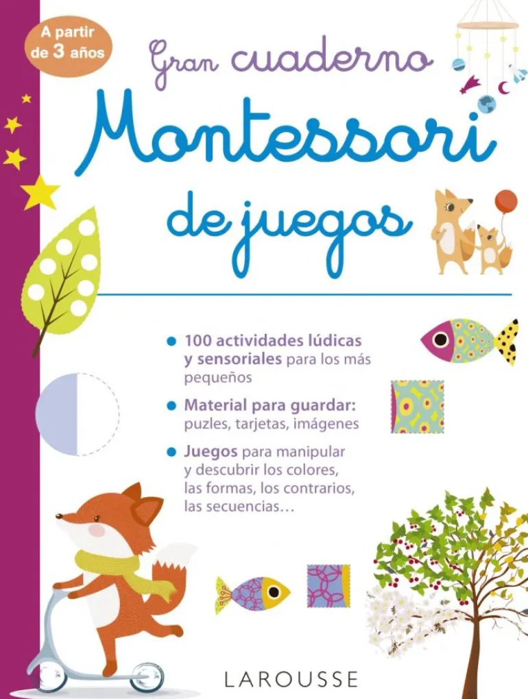 Este cuaderno Montessori de juegos propone más de 100 actividades variadas y progresivas para que los niños descubran, desde los 3 años, las formas, los colores, las dimensiones y las asociaciones.