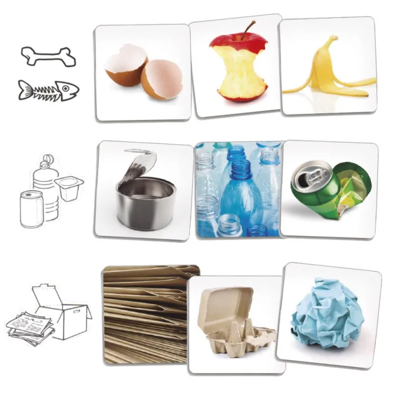 Estamos comprometidos con el cuidado del medio ambiente, con este juego aprenderemos a separar y clasificar los residuos domésticos según los contenedores en los que debemos depositarlos para facilitar su reciclaje, un acto que nos permite aportar un pequeño granito para el cuidado y respeto por el medio ambiente. El material de las fichas es ecológico, proveniente de bosques sostenibles y 100% reciclable.