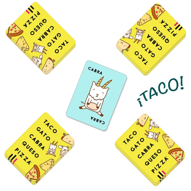 Taco, Gato, Cabra, Queso, Pizza nos encantó, y la nueva versión Taco, Vuelta, Cabra, Queso, Pizza ha hecho que nos guste más aún, ¡es el juego ideal para cualquier momento! Un juego en el que la rapidez visual, la asociación, la memoria y los reflejos serán claves para ayudarte a ganar la partida. Esta nueva versión incluye nuevas cartas con nuevas premisas, añadiendo emoción y más posibilidades de juego. Desarrollar la memoria, la concentración y la rapidez de reacción será pan comido con este juego.
