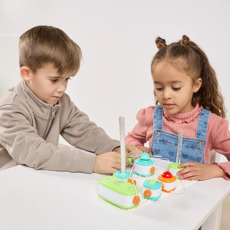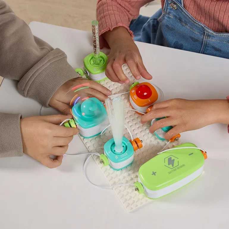 Nos encantan los juegos que acercan a los más pequeños al fascinante mundo de la ciencia, y este set de experimentos nos parece todo un acierto tanto para jugar en casa como en el aula. Gracias a su diseño modular, los circuitos se construyen como un puzle. Basta con encajar los bloques en su sitio para que todo funcione, haciendo la experiencia accesible y segura y estimulando la lógica, la observación y la curiosidad científica.
