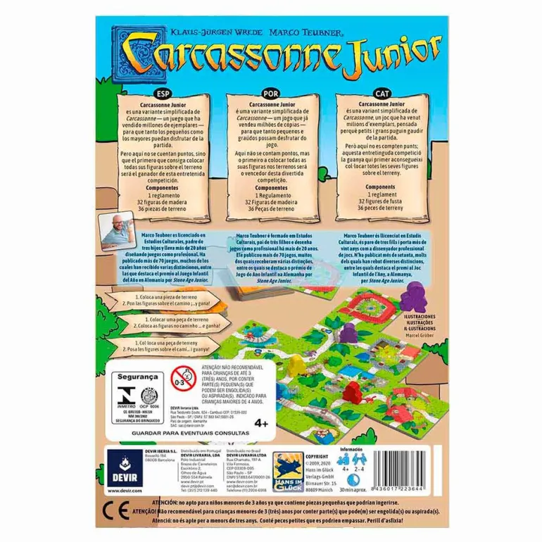 Recomendado a partir de +4 años Indicado de 2 a 4 jugadores. Duración de la partida: 30 minutos aproximadamente. Advertencia: No recomendado para niños menores de 36 meses por contener piezas pequeñas y/o componentes susceptibles de ser desmontados, ingeridos o inhalados.