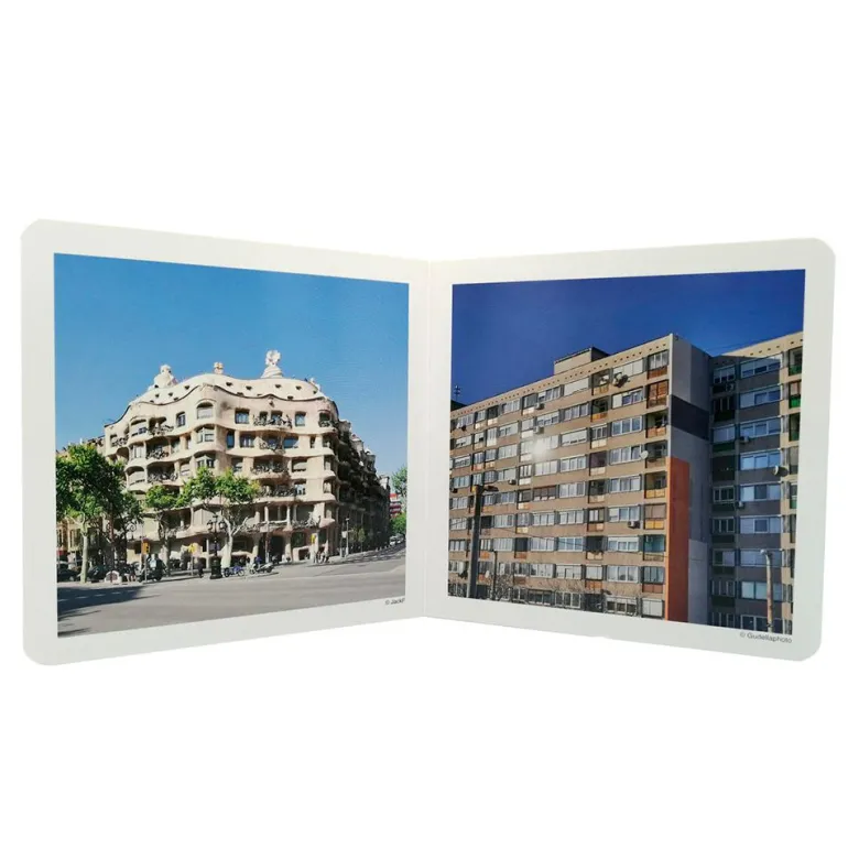 Libro de fotografías de aspectos relacionados con la gran ciudad. Incluye diez fotografías de: «skyline» (portada), tráfico, zona de recreo, tranvía, centro comercial, edificio singular, bloque de pisos, metro, parque, muchedumbre y semáforo.