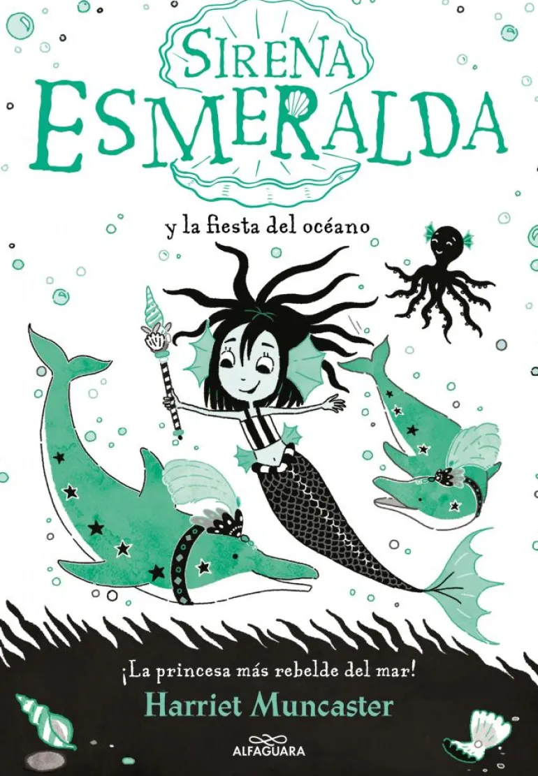 Del universo de Isadora Moon, llega ESMERALDA: ¡la aprendiz de princesa y la sirena más rebelde bajo el mar! Sirena Esmeralda es una princesa… un poco rebelde. A Esmeralda le gusta explorar el fondo del mar y jugar con sus amigas sirenas. Y, desde que su mamá se casó con el rey Óster, ¡tendrá que aprender a ser una princesa! Se acerca la Fiesta del Océano y Esmeralda debe participar en el desfile en la carroza real. ¿Conseguirá disfrutar de su fiesta favorita? ¡Zambúllete en la aventura y descubre un montón de actividades junto a Esmeralda y su pulpo Tintabella! Una nueva colección para aprender a leer en solitario, con preciosas ilustraciones en verde y negro, un texto sencillo y una aventura especial! Para niñas a las que les gustan las princesas, las sirenas y la purpurina, pero también vivir aventuras, defensar sus ideas y hacer lo que les pide el corazón! Vive increíbles aventuras bajo el mar con esta colección para primeros lectores: -Texto sencillo y entretenido, fácil de leer y de entender para niños y niñas a partir de 7 años. -Capítulos cortos y adorables ilustraciones en negro y verde mar. ¡Ideal para sumergirse en la lectura solos! – Del mundo de Isadora Moon y la autora bestseller Harriet Muncaster, con 2 millones de libros vendidos en español. – Con purpurina en la cubierta, para lectores amantes de las burbujas y la magia que desprende el mundo de las sirenas.