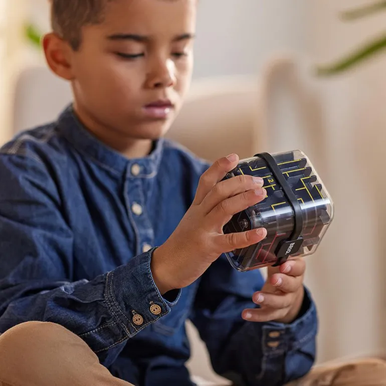 Este genial laberinto hará que te estrujes las neuronas para conseguir superar cada uno de los 10 recorridos de distinta dificultad, mientras giras una y otra vez el rompecabezas para que la bola siga su camino, ¡un auténtico reto pensado para valientes!