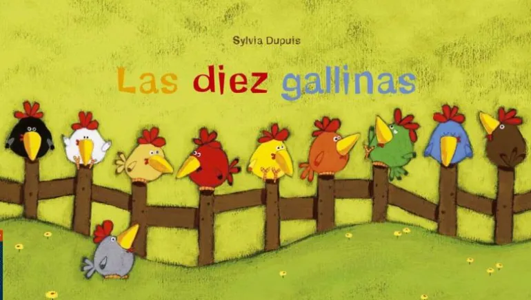 Estas son las diez gallinas más hermosas y mas finas. A partir de un sencillo comienzo como este, los más pequeños disfrutarán de una historia rimada, repleta de colores y grandes lengüetas, en la que reírse a carcajadas gracias a los sorprendentes lugares donde las gallinas deciden poner sus huevos.