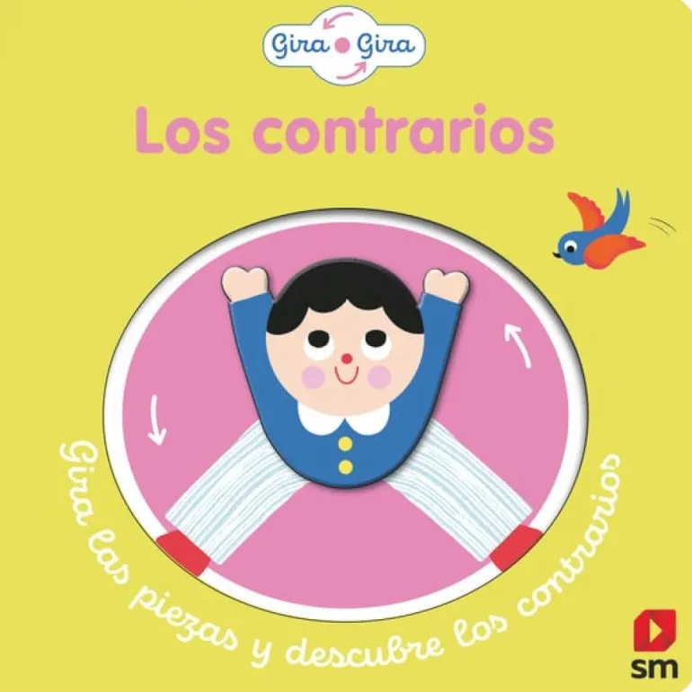 Un libro de cartón con piezas que se giran con el que los niños de 1 año en adelante conocerán los opuestos y realizarán grandes aprendizajes: desarrollarán su capacidad de razonamiento, la motricidad fina y la visión espacial y enriquecerán su lenguaje mientras los manipulan y juegan con ellos.
