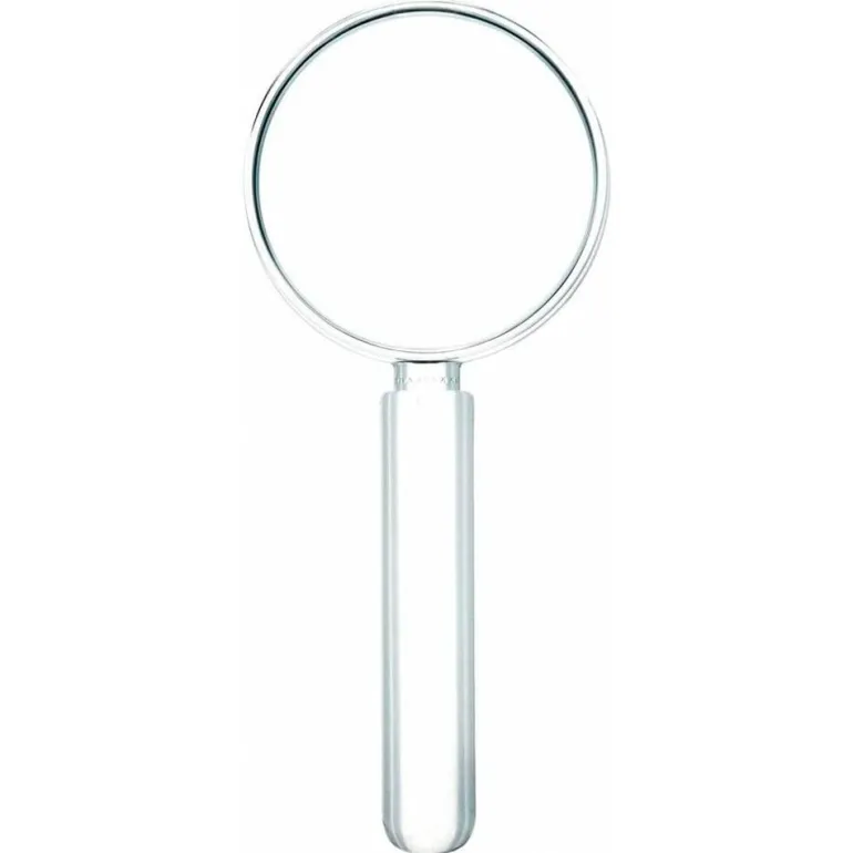 El cristal redondo tiene una lupa de 3 aumentos, y el mango tiene una lupa de 2 aumentos. La forma alargada del cristal del mango hace que sea muy útil para leer texto.
