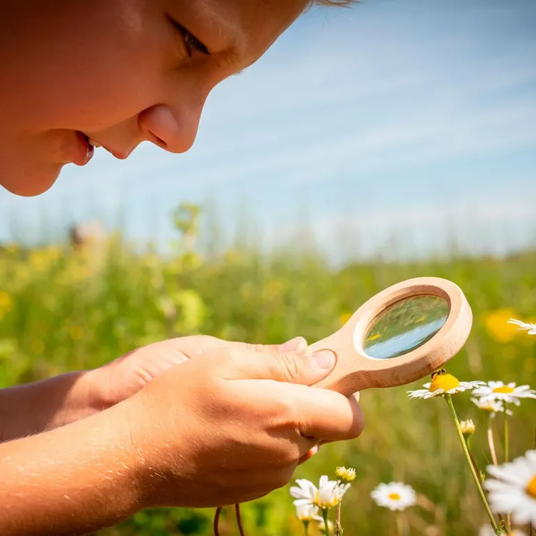Una lupa con un tamaño pequeño perfecta para transportar en tu mochila gracias a su práctica asa, no se puede astillar y está fabricada en madera de haya.