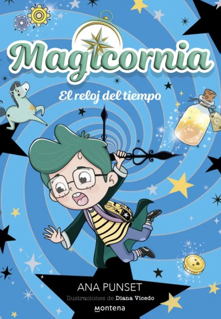 Bienvenidos a MAGICORNIA, ¡el Bazar de las Cosas Asombrosas! ¡Acompaña a Lucas, el primo de Claudia, en sus aventuras repletas de magia por Unicornia! Me llamo Lucas, soy el primo de Claudia, ¡y de mayor quiero ser un gran mago! Aquí, mi madre ha abierto Magicornia, el Bazar de las Cosas Asombrosas, ¡y hoy me haré cargo de la tienda! ¡Por fin podré investigar los objetos más raros! Pero, un momento? ¿Qué es ese reloj tan extraño que ha llegado? ¿Y por qué parece tan importante? ¿Me ayudas a descubrir para qué sirve? ¡Llega una nueva aventura de Magicornia, el spin-off Unicornia, la serie de primeras lecturas de éxito! – De la pluma de Ana Punset, autora bestseller y ¡aprendiz de maga en sus ratos libres! – Ilustraciones divertidas y llenas de vida, creadas por Diana Vicedo, que acompañan la historia en cada página. – Capítulos breves, texto sencillo y entretenido, ¡perfecto para que pequeños lectores comiencen a explorar el mundo de los libros (y de la magia)! – ¡Con acabados especiales supermágicos en la cubierta! – ¡Magia, amistad, humor y aventuras son los ingredientes que dan brillo a esta historia! ¡Acompaña a Lucas y sus amigos en una nueva aventura! Y recuerda? ¡nada es imposible!