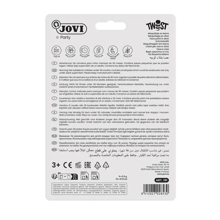 Completa tu disfraz con este increíble set de maquilla en barra 5 colores. ¡Impresiona a todos combinando estos tres colores para crear multitud de personajes divertidos!