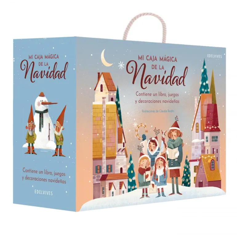 ¡Disfruta de la magia de la Navidad! En el interior de esta caja encontrarás todo lo necesario para divertirte con tu familia y tus amigos: un libro sobre Papá Noel y sus ayudantes elfos, decoraciones navideñas, juegos (rompecabezas, memory, tangram, tres en raya?) y más sorpresas para esperar la mejor noche del año.