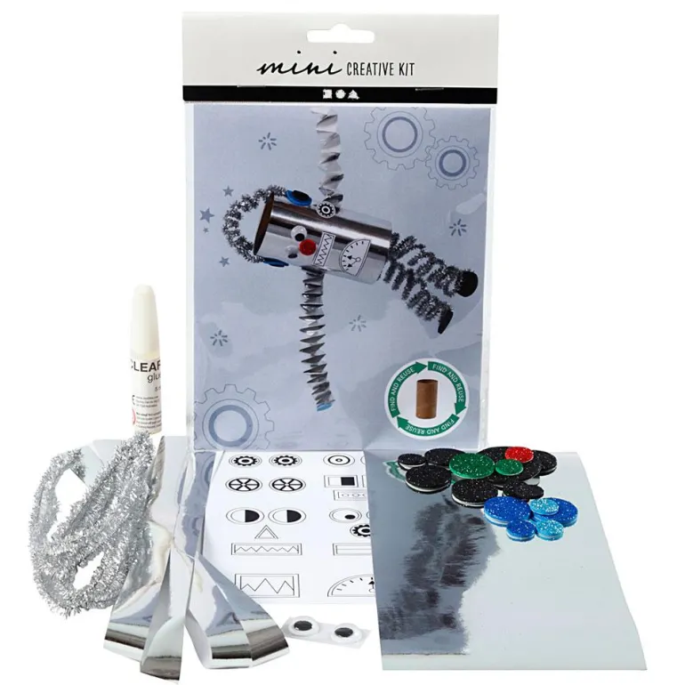 La creatividad no está reñida con la ecología, y es que con este original set de materiales, podrás crear un fantástico robot reutilizando un tubo de cartón de papel higiénico, ¡cuida del planeta generando menos residuos!