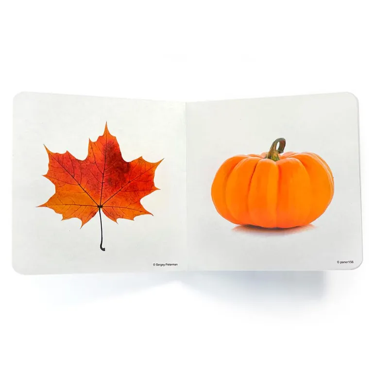 Libro de fotografía que muestra el color naranja en la naturaleza y objetos cotidianos. Incluye fotos de animales, frutas y otros objetos cuya característica común es ser de color naranja.