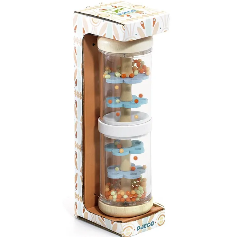 ¡Siente el ritmo! Descubre Baby Raini, un vistoso palo de lluvia de madera con diseño colorido, que tu bebé adorará.