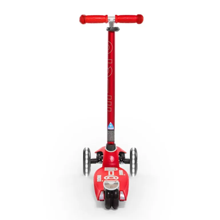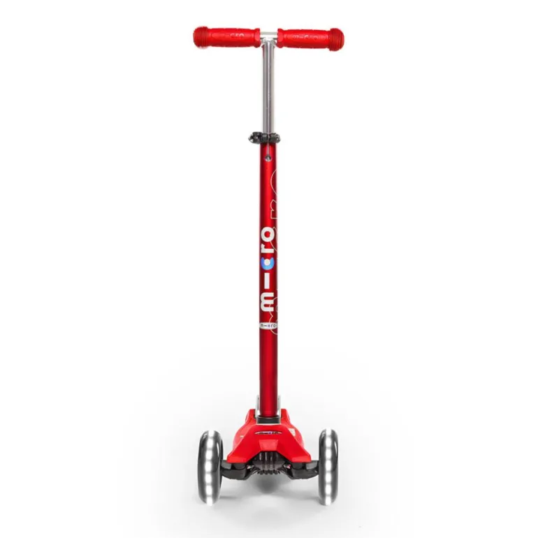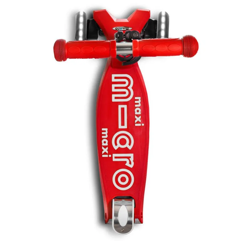 Disfruta de tus paseos en patinete con este increíble modelo Maxi Micro Deluxe en color rojo, con manillar extensible… ¡y con luces LED en las ruedas!