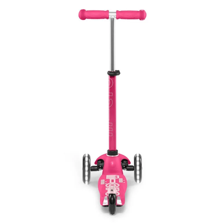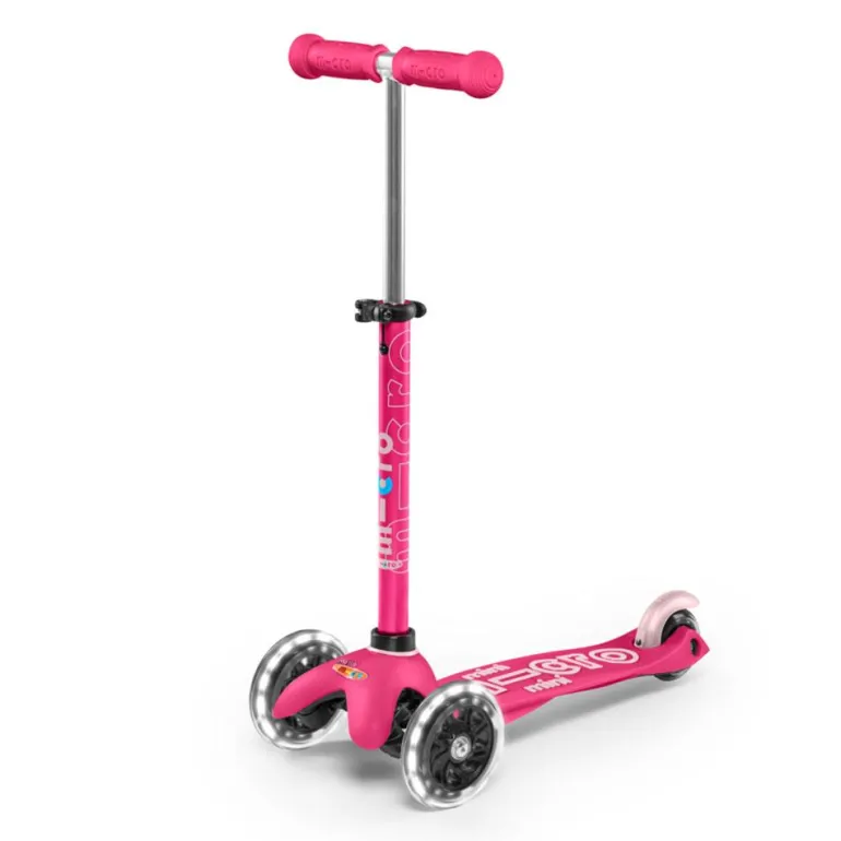 Disfruta de tus paseos en patinete con este increíble modelo de Mini Micro en color rosa, con manillar extensible… ¡y con luces LED en las ruedas!