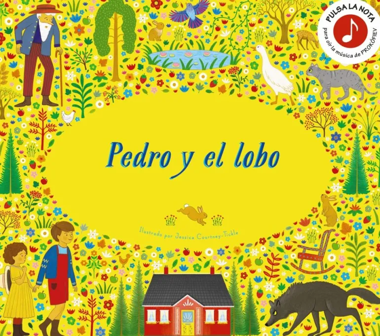 Pulsa la nota en cada página para que la historia cobre vida con la maravillosa música de Pedro y el lobo de Prokófiev.¿Logrará el protagonista vencer su miedo y salvar de un lobo hambriento a un pajarito, a una pata y a la gata de su abuelo?