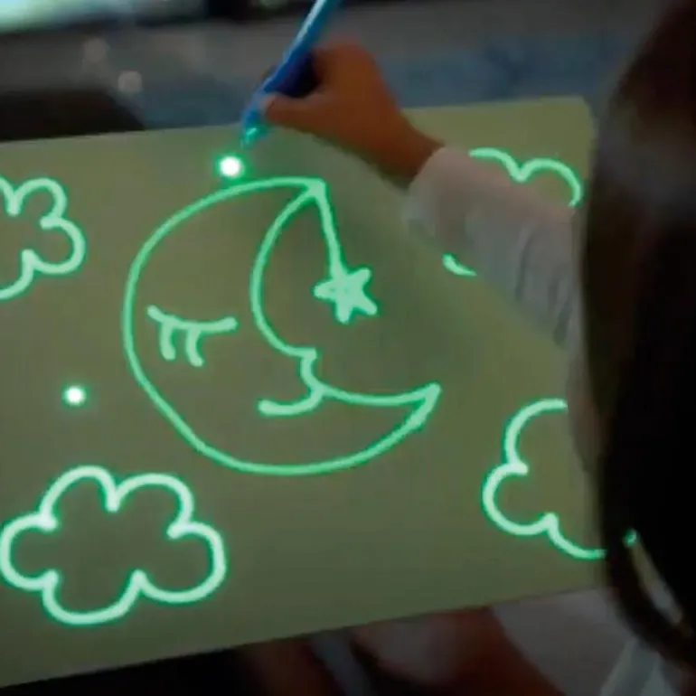 Con Pintafluo, la oscuridad se convierte en la mejor aliada para los pequeños y pequeñas artistas. ¡Transforma tu creatividad en un universo de formas luminosas!