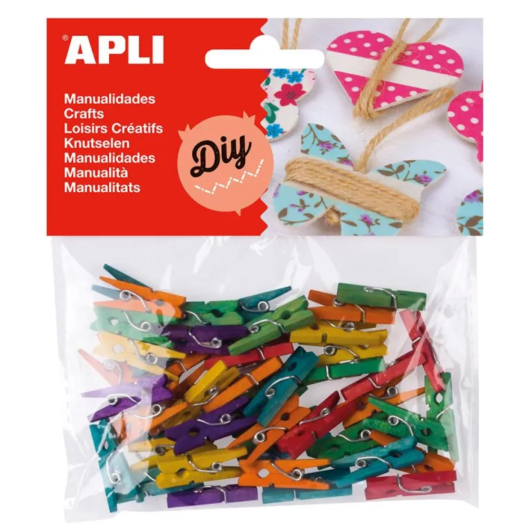 Desde originales marcos para fotos, a espectaculares composiciones o collages, estas pinzas de madera de colores pueden ser, en realidad, lo que tu imaginación decida. Incluye 45 pinzas de 2,5 x 0,3cm. en colores surtidos.