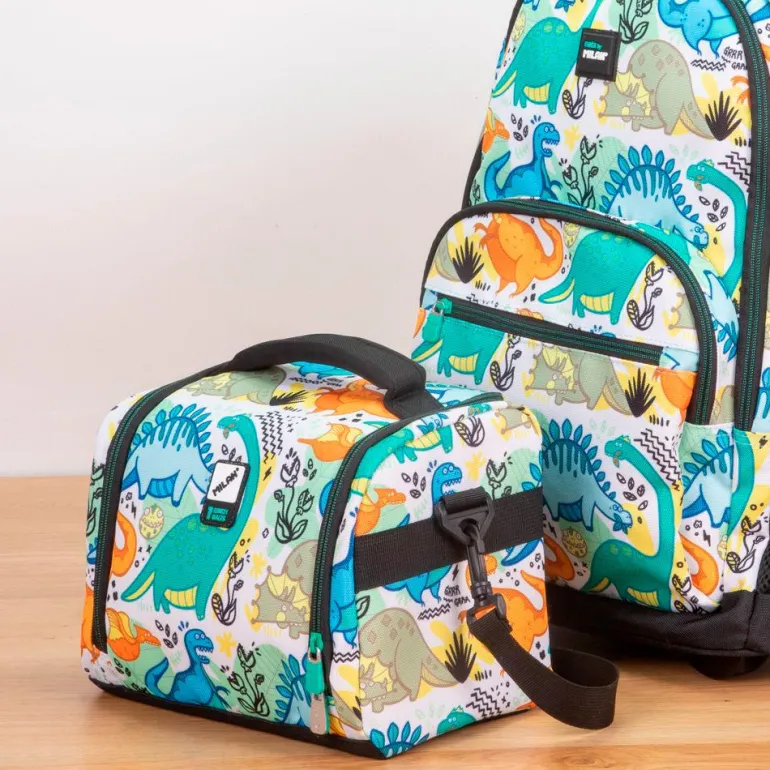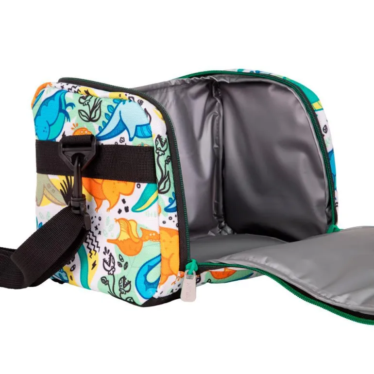 Atrévete con este increíble estampado de simpáticos dinosaurios que viven entre hojas coloridas y plantas carnívoras. Inspira a todos y todas con su genial diseño ¡también a la hora de comer!