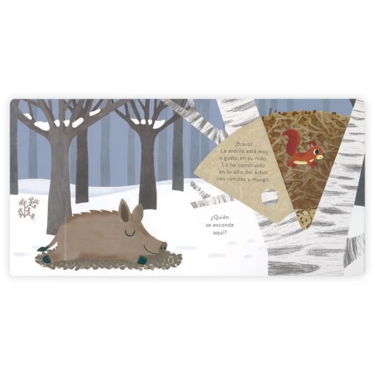 El bosque se ha cubierto de una gran capa de nieve. ¿Dónde irán los animales para protegerse del frío? ¿Conoces la guarida secreta del tejón? Y el refugio de la ardilla, ¿sabes dónde está? ¡Descubre dónde se esconde cada animal jugando con piezas de puzle!