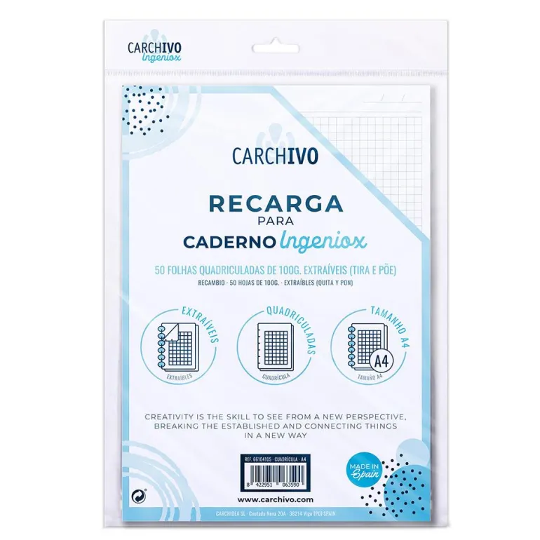 Hazte con este genial recambio de hojas cuadriculadas tamaño A4 para tu cuaderno Ingeniox, ¡organiza tu día a día con estilo!