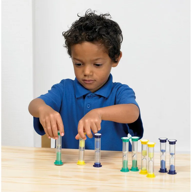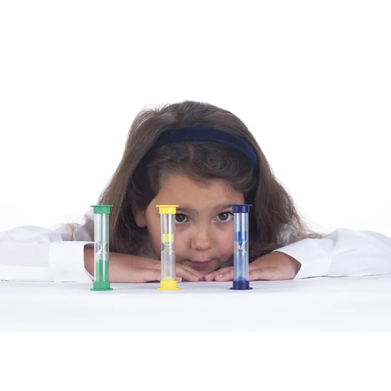 Los relojes de arena ofrecen una demostración visual del paso del tiempo facilitando que podamos entenderlo, ideal para juegos cronometrados o para medir períodos de tiempo específicos para diversas actividades.